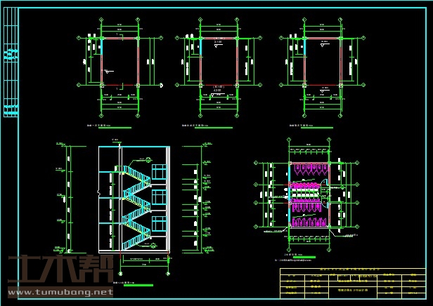 三层:普通教室9*8.1*7间、物理实验室13.5*8.4*2间、准备室9*8.4*1间、教研室4.5*8.4*4间、教务处6*6.9*1间、杂物储藏室5.7*3*1间、男厕6.6*3.6*2间,5.7*3.3*1间、女厕6.6*3.9*2间,5.7*2.7*1间;