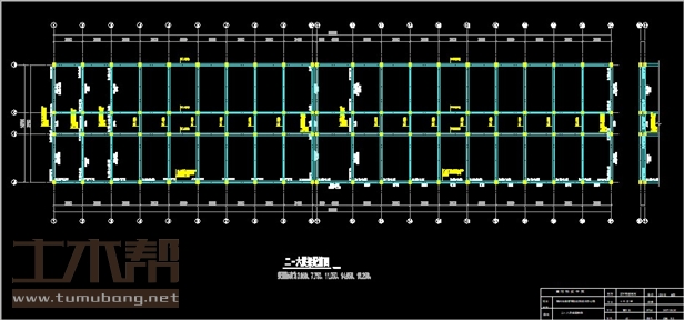 建筑长69.6m,宽14.7m.一榀架层高3.6m,柱距3.6m,3跨,6m,2.7m,6m;