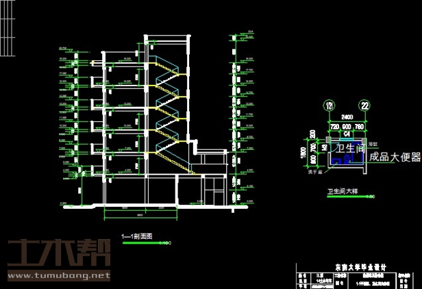 6层框架结构住宅楼,土木工程建筑结构毕业设计,长42.4米,宽10.2米,面积2658平方米