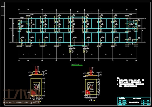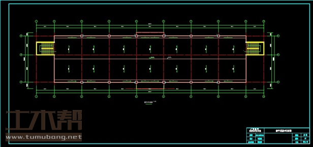 建筑长64.8m,宽13.2m.一榀架层高3.7m,柱距7.6m,3跨,5.4m,2.4m,5.4m;