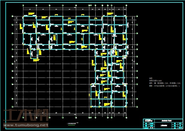 2层框架结构教学楼,土木工程建筑结构施工组织毕业设计,长46.8米,宽41.1米,面积2000平方米