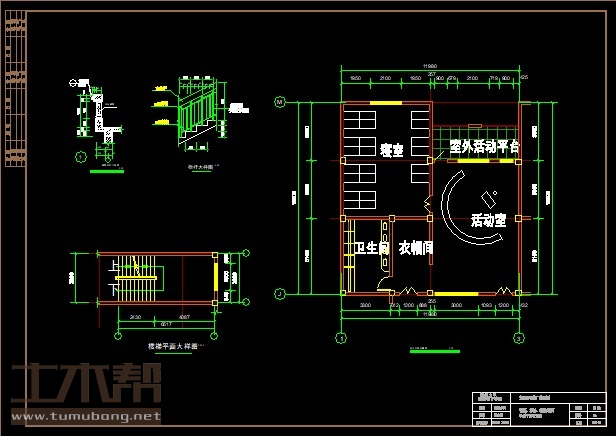 二层:寝室6*7.8*3间,卫生间3.3*5.1*3间,衣帽间2.7*5.1*3间,活动室6*9*3间,园长室5.6*3*1间,办公室5.6*3*1间,资料兼会议室6.7*6*1间,办公室6.7*3.3*2间,男厕2.9*3.3*1间,女厕3.8*3.3*1间;