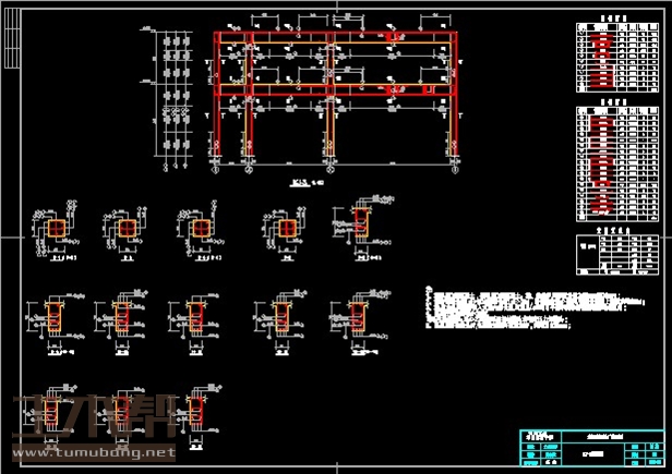 建筑长46.8m,宽41.1m.一榀架层高3.7m,柱距6m,3跨,7.8m,5.1m,2.1m;