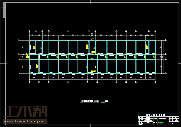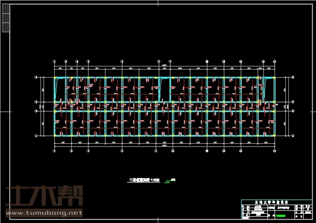 二层:教师休息室4.5*6.6*1间,教研室13.5*6.6*3间,会议室13.5*6.6*1间,阅览室13.5*6.6*2间,多媒体教室9*6.6*3间,男卫3*6.6*1间,女厕3*6.6*1间;
