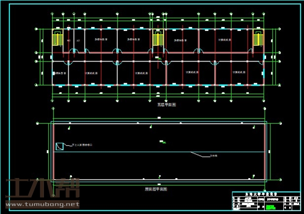 五层:教师休息室4.5*6.6*1间,计算机房13.5*6.6*4间,多媒体教室9*6.6*3间,男卫3*6.6*1间,女厕3*6.6*1间;