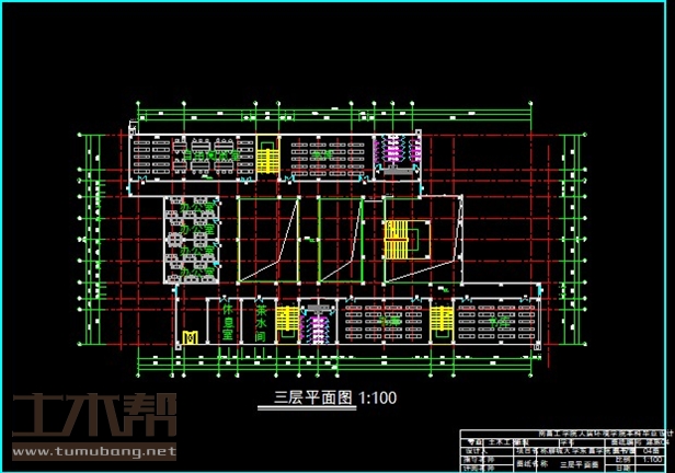 三层:自由阅览室23.5m*8m*1间,书库12.9m*8m*1间,卫生间3.3m*6m*1间,卫生间6.3m*6m*1间,洗手台9.6m*2m*1间,办公室11m*3.75m*4间,休息室6m*8m*1间,茶水间6m*8m*1间,,楼梯间4m*8m*3间,楼梯间6.6m*7.7m*1间,卫生间3.3m*8m*2间,书库16.2m*8m*1间,书库16.5m*8m*1间;