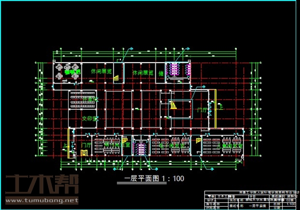一层:咖啡吧11m*8m*1间,休闲展览12.5m*8m*2间,楼梯间4m*8m*3间,楼梯间6.6m*7.7m*1间,储藏室4m*8m*1间,卫生间3.3m*6m*1间,卫生间6.3m*6m*1间,洗手台9.6m*2m*1间,休息室11m*7.5m*1间,文印室11m*7.5m*1间,期刊阅览室12m*8m*1间,卫生间3.3m*8m*2间,电子阅览室16.2m*8m*1间,儿童阅览室16.5m*8m*1间;