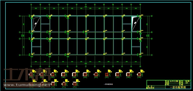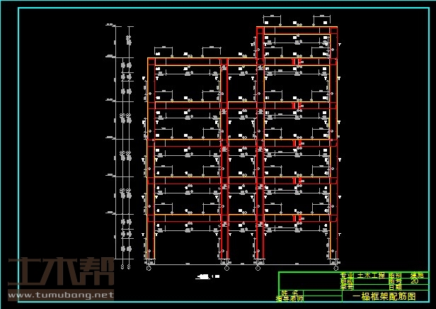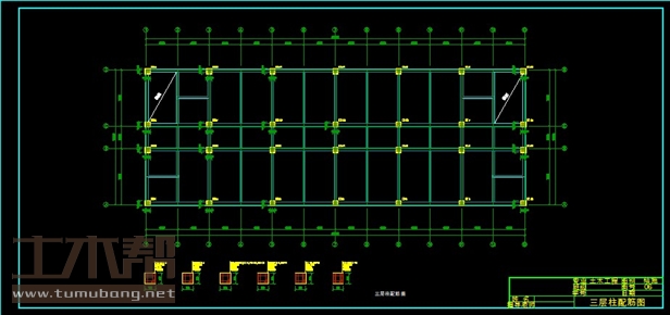 建筑长50.4m,宽18m.一榀框架首层层高4.55m,二至四层3.6m,五层4.2m,柱距8.4m,3跨,跨度7.5m,3m,7.5m;