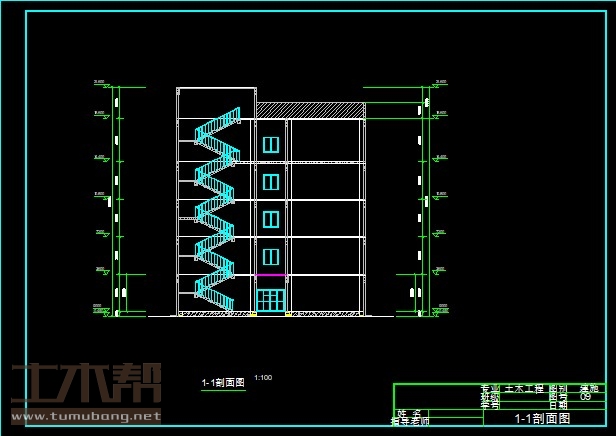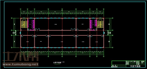 五层:教室8.4m*7.5m*5间,音乐教室16.8m*7.5m*1间,阶梯教室25.2m*7.5m*1间,男卫生间4.2m*7.5m*1间,女卫生间4.2m*7.5m*1间,楼梯间4.2m*7.5m*2间;