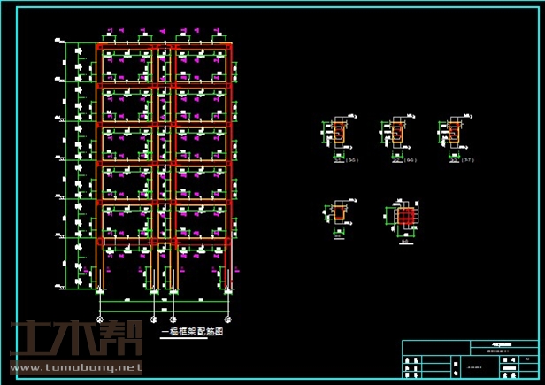 建筑长68.4m*9.9m.一榀框架首层层高4m,二至六层层高3m,柱距3.3m,3跨,跨度4.2m,1.5m,4.2m;