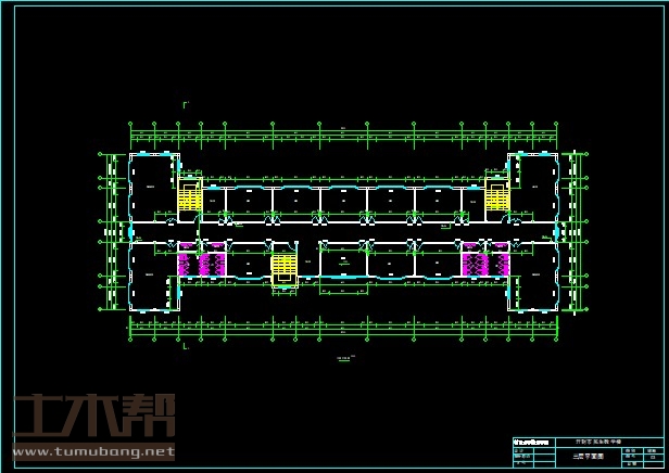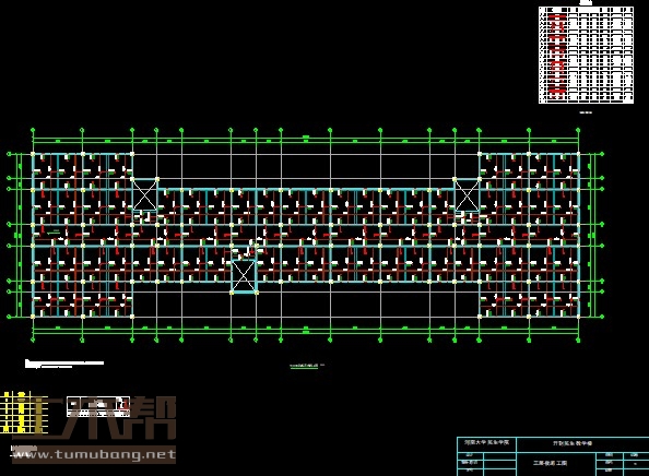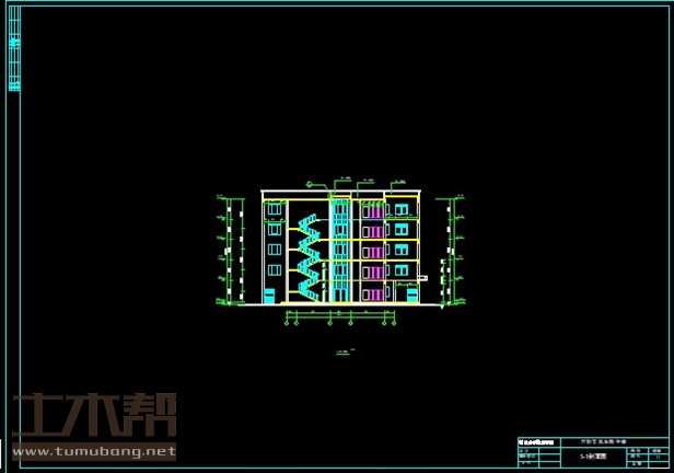 二至五层:阶梯教室8.4m*12m*3间,会议室8.4m*12m*1间,男卫生间4.2m*6m*2间,女卫生间4.2m*6m*2间,教室8.4m*6m*9间,办公室4.2m*6m*3间,楼梯间4.2m*7.8m*3间;