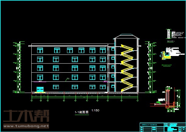 5层框架结构教学楼,土木工程建筑结构毕业设计,长67米,宽46米,面积8731平方米