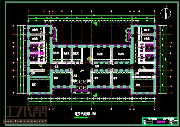 一层:教室10.2m*7.5m*2间,楼梯间10.2m*3.6m*2间,男卫生间7.2m*4.5m*2间,女卫生间7.2m*4.8m*2间,办公室7.2m*3.9m*4间,教室9.3m*7.5m*3间,大厅9.3m*7.5m*1间,医务室4.8m*7.5m*1间,医务室4.5m*7.5m*1间,保安室4.8m*7.5m*1间,楼梯间4.5m*7.5m*1间,活动室9.3m*7.5m*2间;