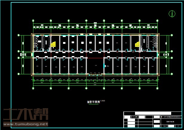 一层:宿舍3.3m*6m*19间,门厅6.6m*6m*1间,管理室3.3m*6m*1间,卫生间3.3m*6m*2间,盥洗室3.3m*6m*2间,楼梯间3.3m*6m*2间;