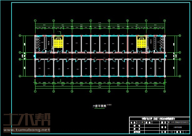 二至六层:宿舍3.3m*6m*21间,管理室3.3m*6m*1间,卫生间3.3m*6m*2间,盥洗室3.3m*6m*2间,楼梯间3.3m*6m*2间;