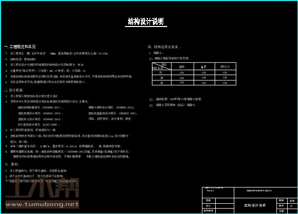 建筑长57.5m,宽35.3m.一榀框架首层层高5.1m,二至四层层高3.6m,柱距7.2m,3跨,跨度5.4m,2.4m,5.4m;