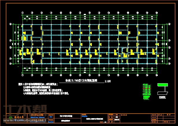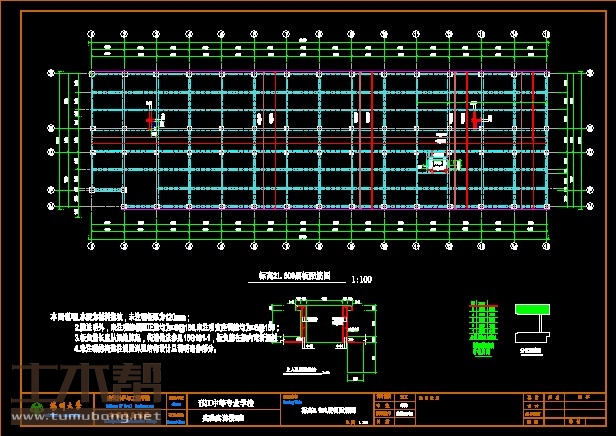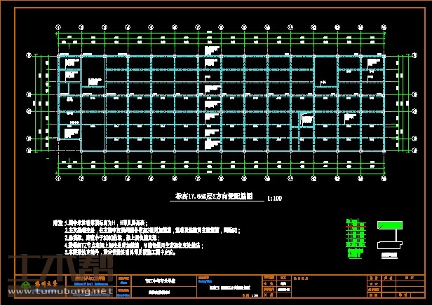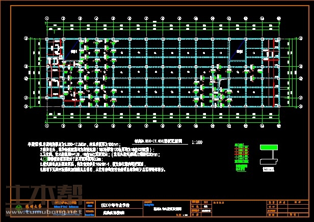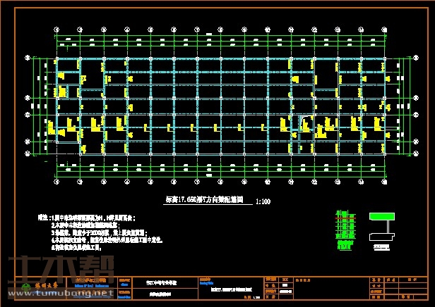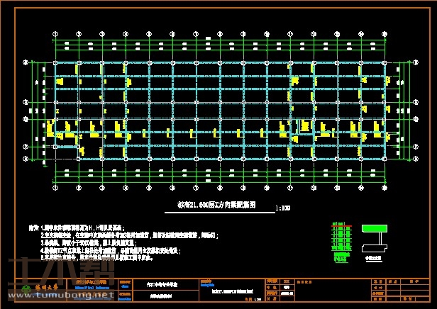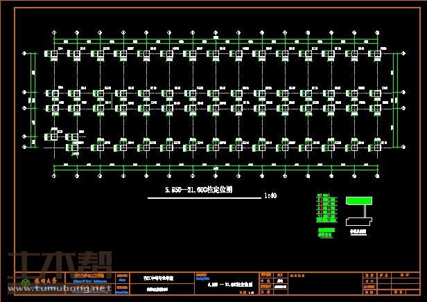 建筑长66.17m,宽19.44m.一榀框架首层层高6.45m,二至五层层高3.9m,柱距4.7m,3跨,跨度7.9m,3.4m,7.9m;