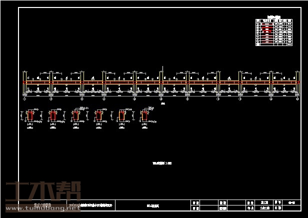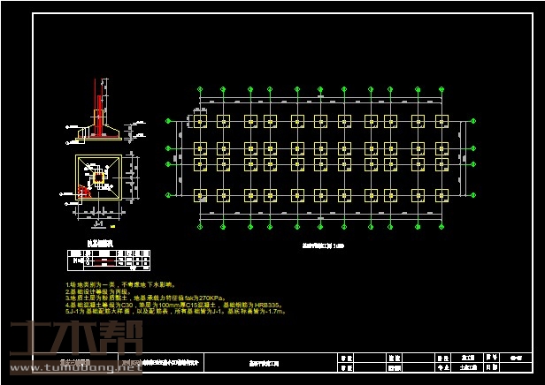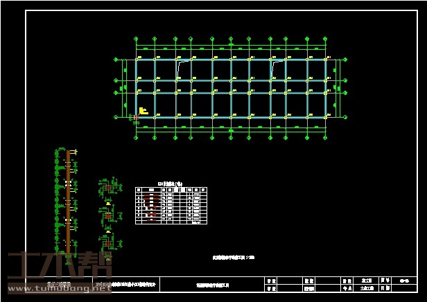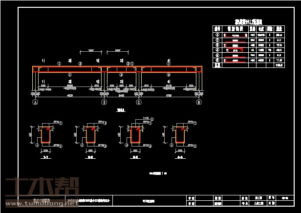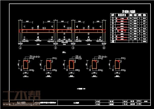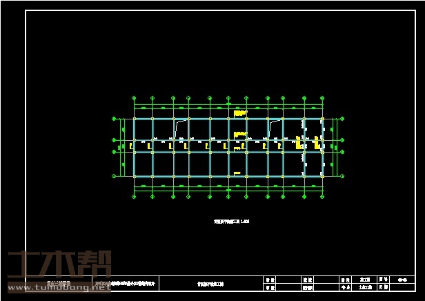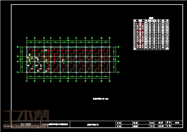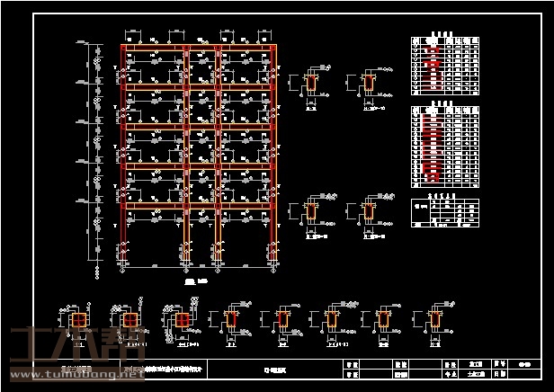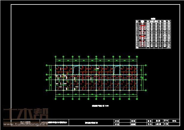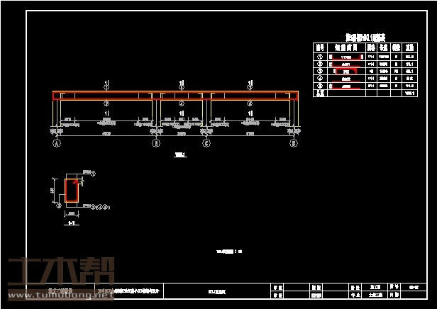 建筑长37.2m,宽11.4m.一榀框架首层层高4.3m,二至五层层高3m,柱距3.6m,3跨,跨度4.8m,2.4m,4.2m;
