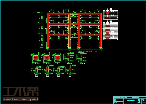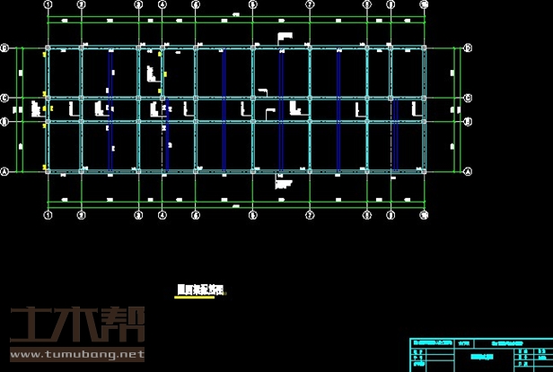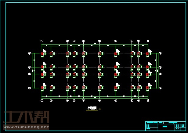建筑长47.4m,宽15.6m.一榀框架首层层高3.6m,二至三层层高3.3m,3跨,跨度6.3m,3m,6.3m.