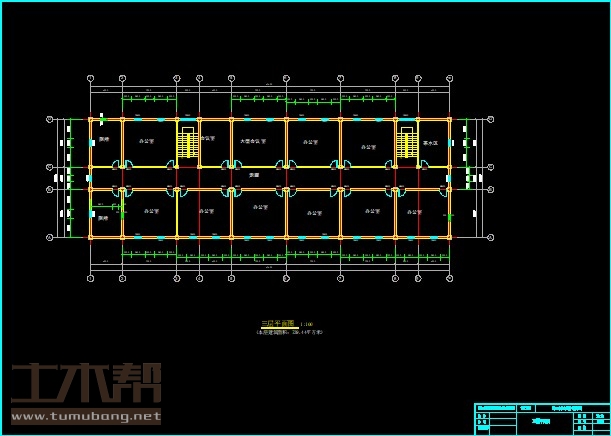 二层:厕所4.2m*6.3m*2间,办公室7.2m*6.3m*10间,茶水间4.2m*6.3m*1间,会议室4.2m*6.3m*1间,楼梯间3m*6.3m*2间;