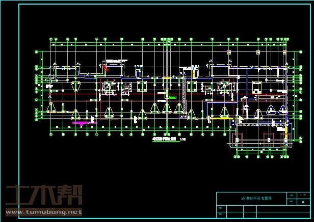 建筑长71.63m,宽27.05m.一榀框架首层层高2.6m,二层层高3m,三层层高2m,2跨,跨度9.65m,5.05m;