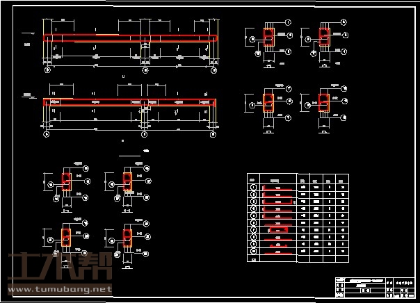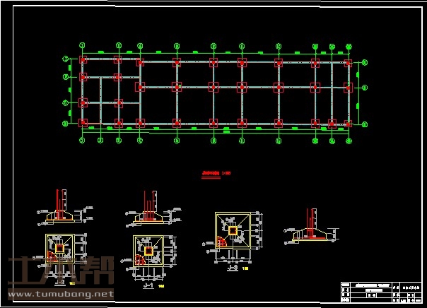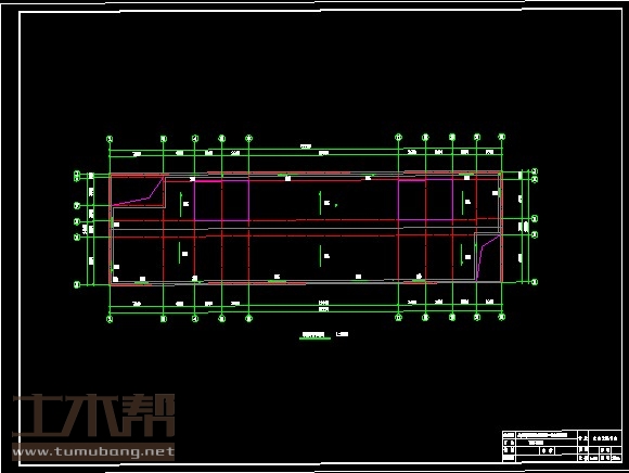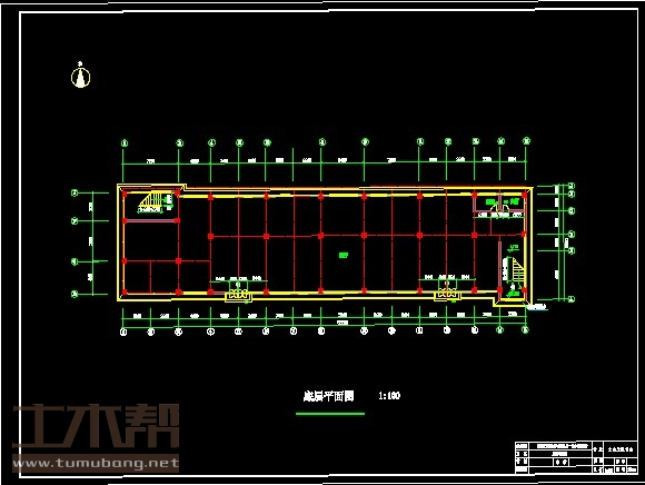 建筑长52.2m,宽14m.一榀框架首层层高5.1m,二至六层层高3.3m,柱距3.6m,2跨,跨度7m,4.9m;