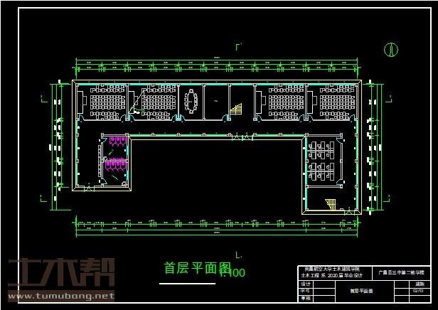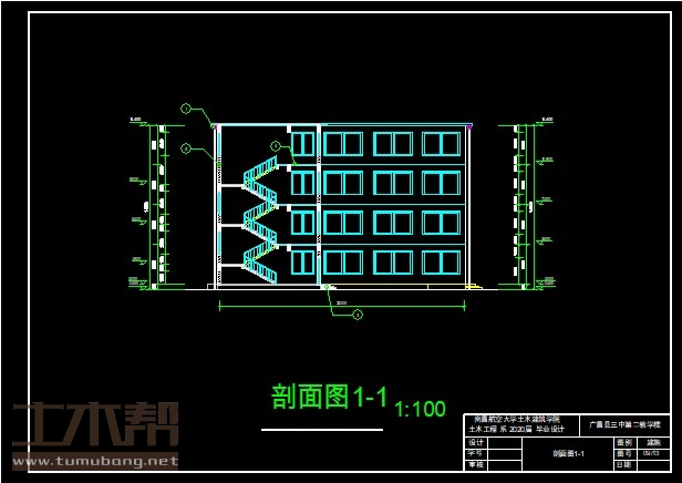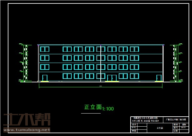 4层框架结构教学楼,土木工程建筑结构毕业设计,长49.5米,宽22.2米,面积2581平方米