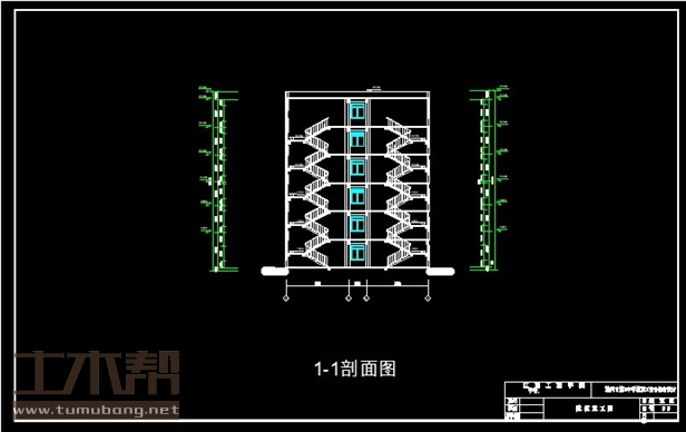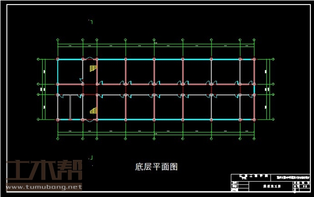 一至六层:房间3.5m*7m*2间,楼梯间4m*7m*2间,房间8m*7m*10间,房间4m*7m*2间,房间7m*7m*1间;