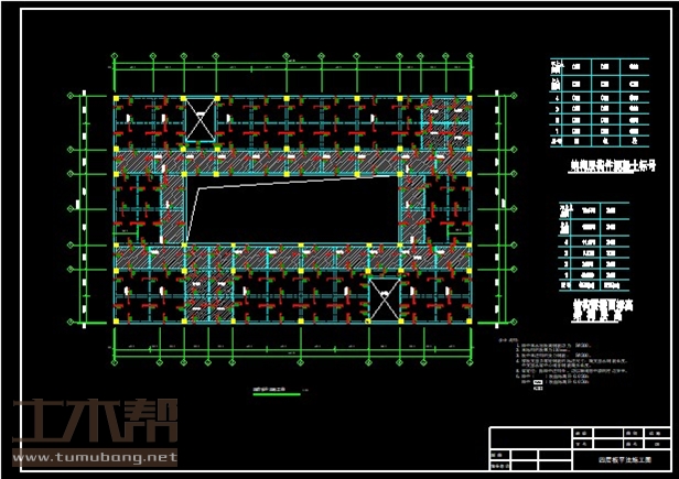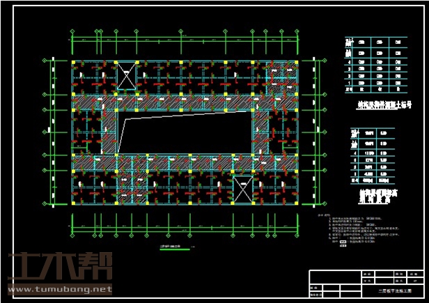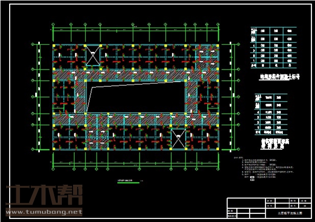 建筑长44.3m,宽28.2m.一榀框架首层层高4.85m,二至四层层高3.9m5跨,跨度6.6m,3m,8.8m,3m,6.6m;