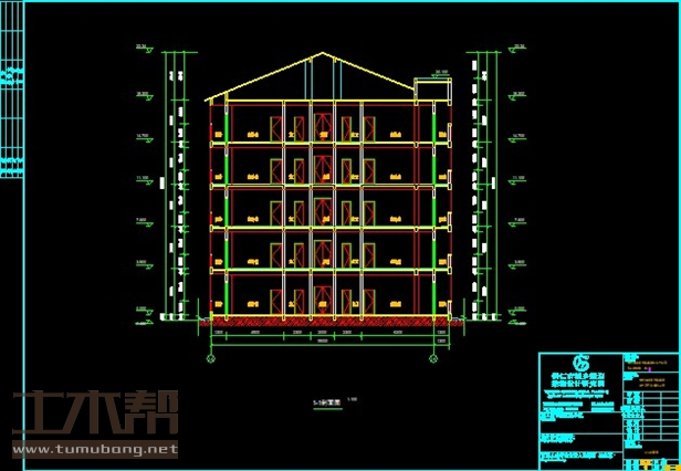 5层框架结构宿舍楼,土木工程建筑毕业设计,长46.8米,宽21.6米,面积4337平方米
