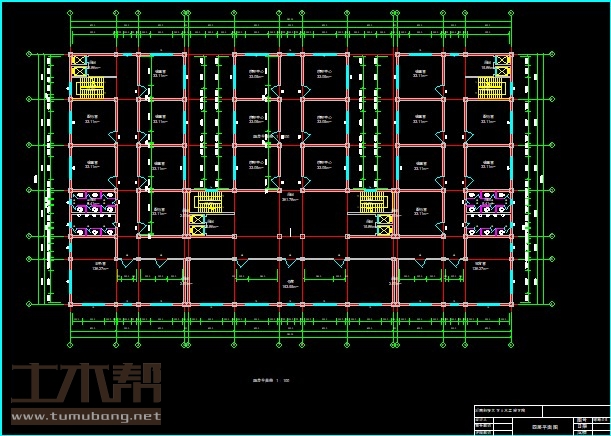 五至七层层:办公室6m*6m*15间,大会议室21m*6m*1间,小会议室15m*6m*1间,卫生间6m*3m*4间,电梯2.2m*1.5m*8间,楼梯间6m*3m*4间,开水房6m*6m*2间,会客室6m*6m*2间,报告厅15m*6m*1间;