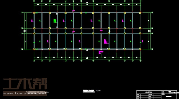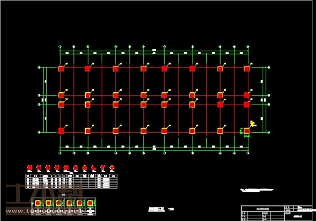 建筑长48.6m,宽16.8m.一榀框架首层层高4.65,二至六层3.3m,柱距7.2m,3跨,跨度7.2m,2.4m,7.2m;