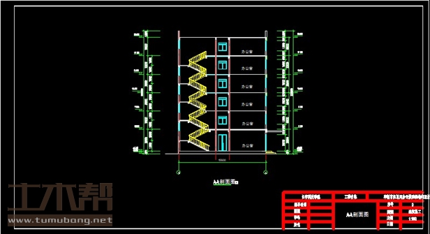 二至五层:办公室7.2m*7.2m*8间,档案室5.4m*7.2m*1间,楼梯间3.6m*7.2m*2间,开水间3.6m*7.2m*1间,厕所3.6m*7.2m*2间,楼梯间5.4m*7.2m*1间,会议室7.2m*7.2m*1间,储物间3.6m*7.2m*1间;