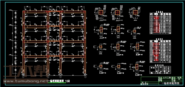 建筑长60m,宽18m.一榀框架首层层高4.6m,二至四层3.6m,柱距4.5m,3跨,跨度7.5m,3m,7.5m;