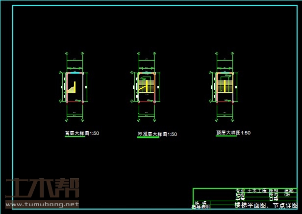 二至三层:图书室13.5m*7.5m*1间,教室9m*7.5m*6间,教研室6m*7.5m*1间,实验室13.5m*7.5m*1间,女卫生间4.5m*7.5m*2间,男卫生间4.5m*7.5m*2间,楼梯间4.5m*7.5m*2间,教研室6m*7.5m*1间;