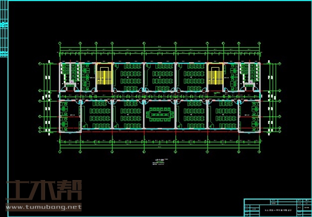 一层:教师办公室5.4m*8.1m*2间,教室8.4m*7.2m*7间,门厅8.4m*7.2m*1间,男厕2.7m*7.2m*2间,女厕2.7m*7.2m*2间,教师办公室4.2m*7.2m*2间,楼梯间4.2m*7.2m*2间;