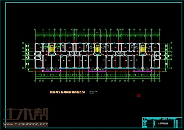 建筑长56.8m,宽11.1m.一榀框架层高3m;