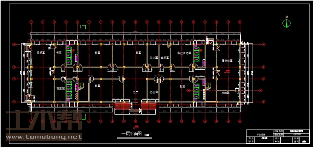 一层:阅览室6.6m*16.9m*1间,档案室3.3m*6.6m*1间,卫生间3.3m*6.6m*4间,楼梯间3.3m*6.6m*2间,教室9.9m*6.6m*4间,门厅6.6m*6.6m*1间,办公室3.3m*6.6m*2间,乐器室6.6m*3.3m*1间,音乐教室6.6m*13.2m*1间,书库3.3m*6.6m*1间,器材室3.3m*6.6m*1间,科技活动室6.6m*6.6m*1间;