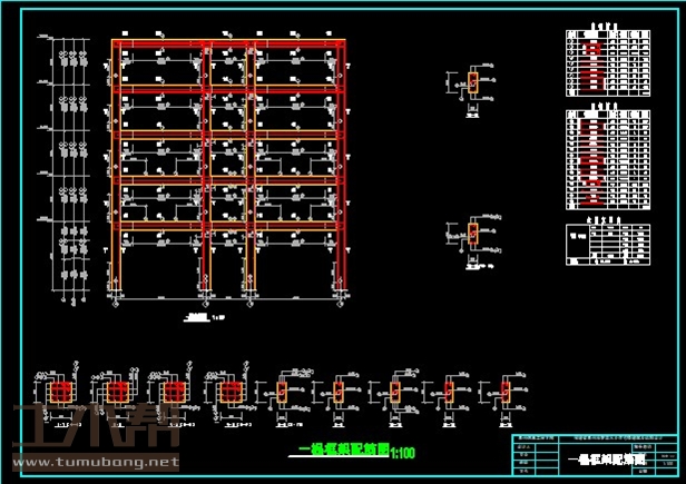 建筑长31.2m,宽31.2m.一榀框架首层层高4.2m,二至五层2.8m,柱距3.8m,3跨,跨度5.7m,2.7m,5.7m;