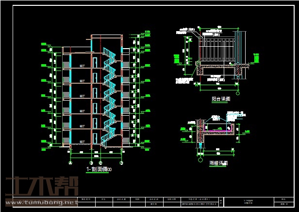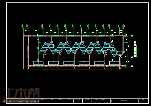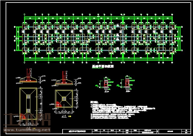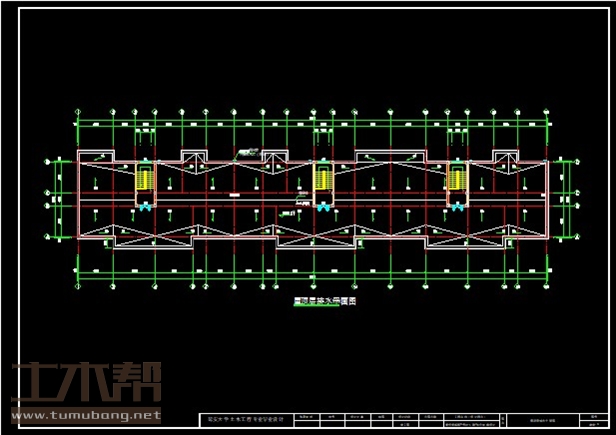 建筑长64.53m,宽10.44m.一榀框架首层层高5.7m,二至六层3m,3跨,跨度4.2m,1.8m,4.2m;