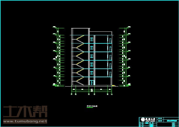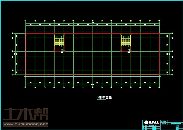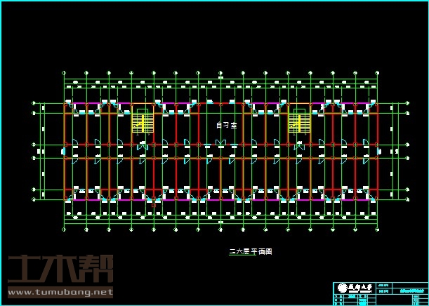 二至六层:宿舍4m*7.4m*24间,楼梯间4m*7.4m*2间,自习室8m*7.4m*1间;